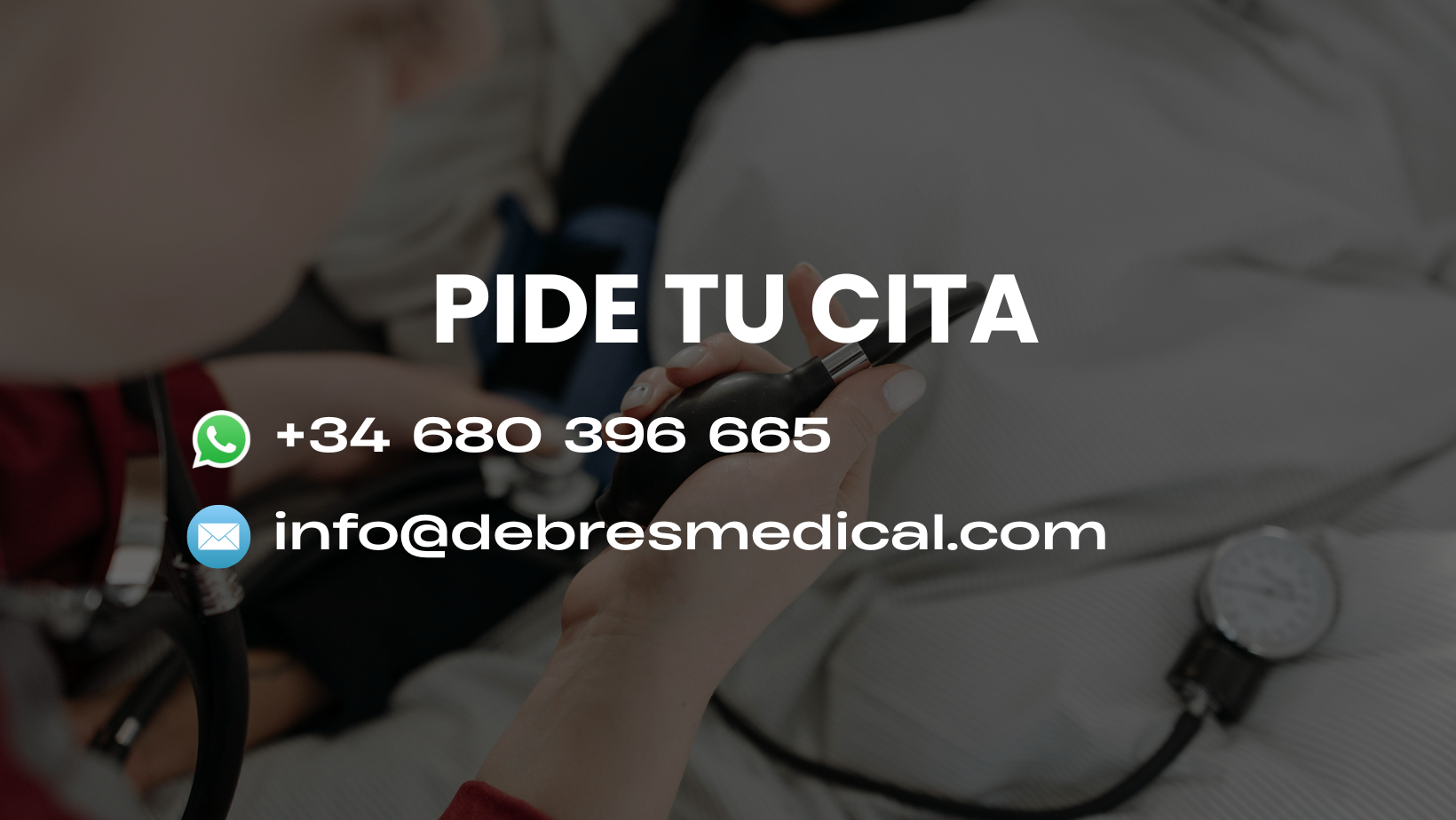 La consulta de DEBRES Medical tiene un coste de 200€. Te ofrecemos la máxima comodidad para que no tengas que desplazarte, ya sea mediante teleconsulta o directamente en su domicilio en Madrid.